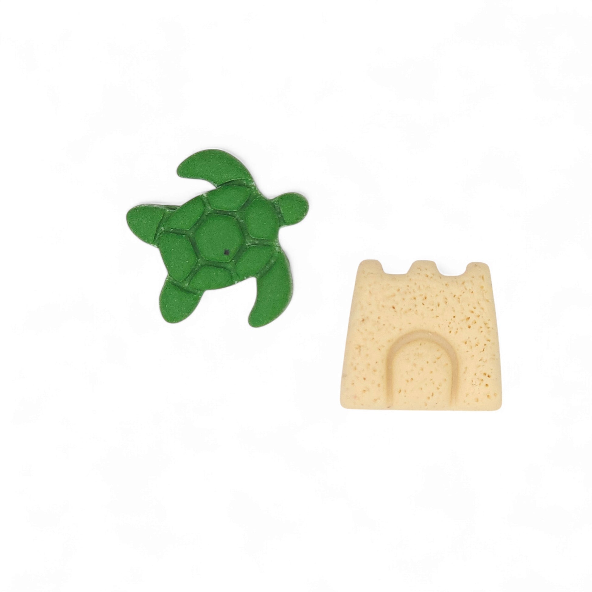 Ανόμοια καρφωτά καλοκαιρινά παιδικά σκουλαρίκια πράσινο χελωνάκι και κάστρο άμμου από πολυμερικό πηλό
