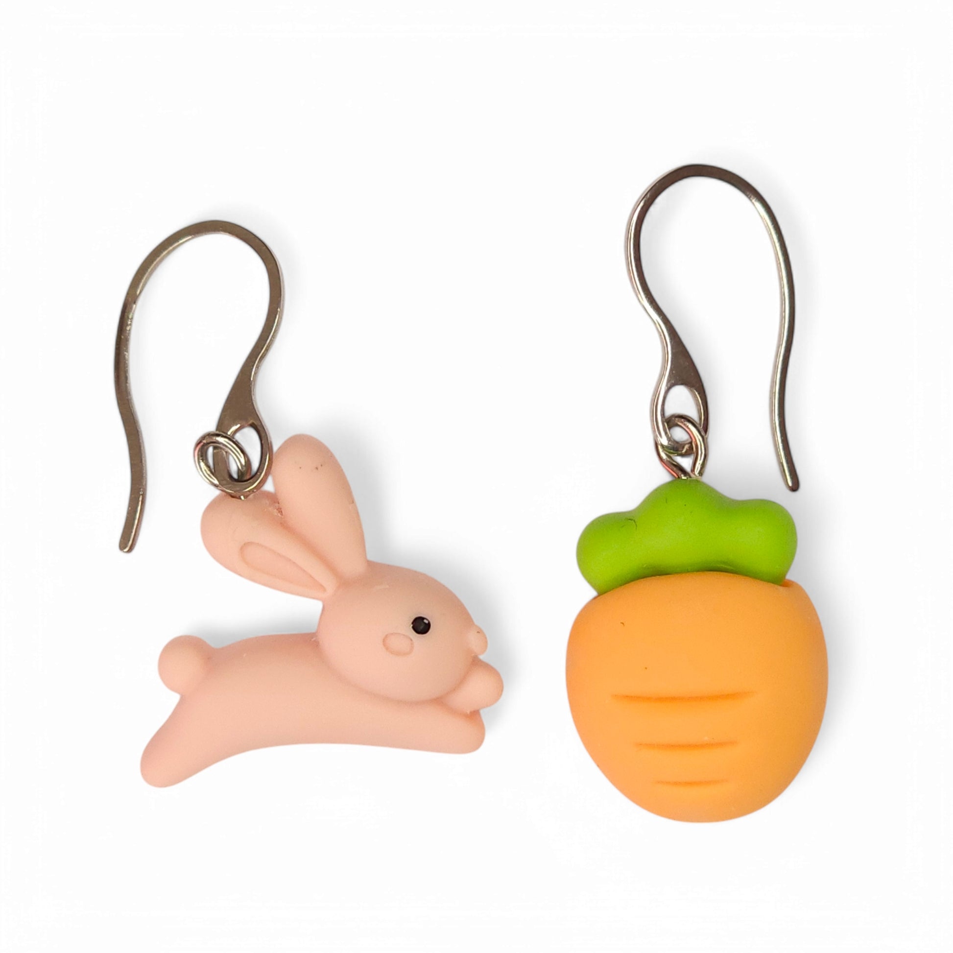 Ανόμοια κρεμαστά σκουλαρίκια ροζ λαγός και πορτοκαλί καρότο