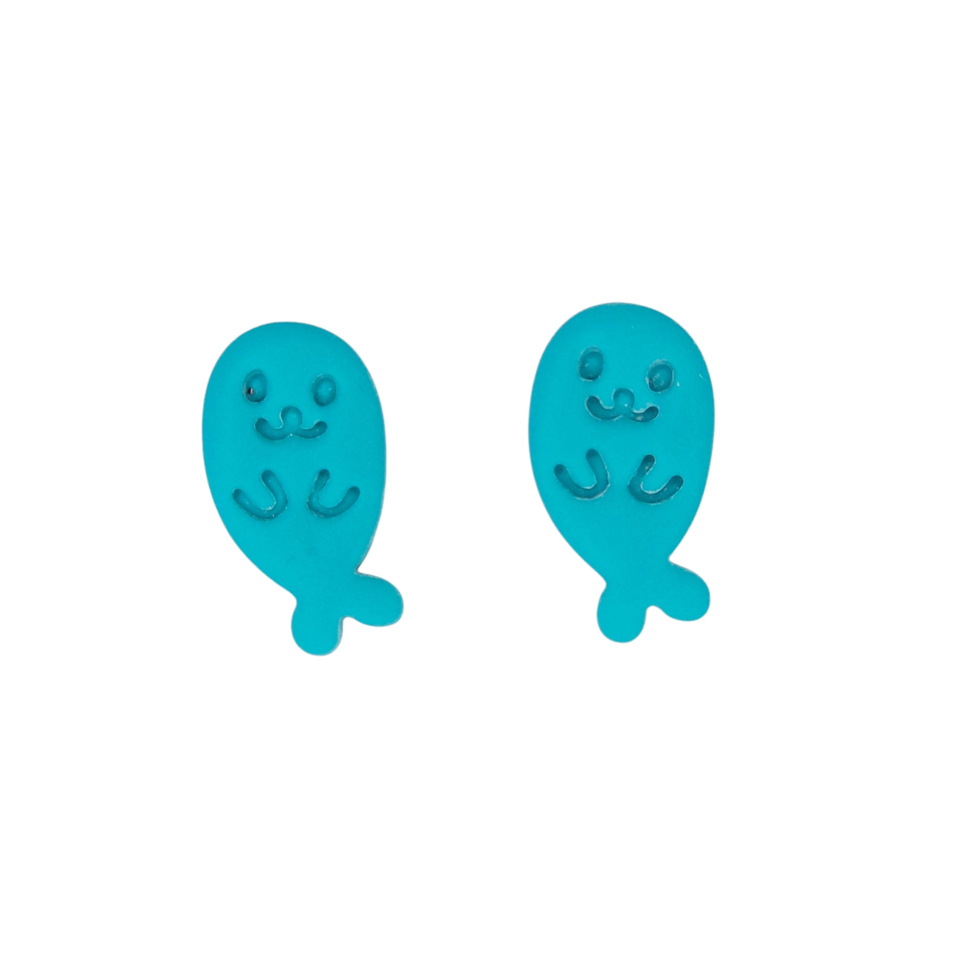 Καλοκαιρινά παιδικά σκουλαρίκια τυρκουάζ φώκιες από πολυμερικό πηλό.