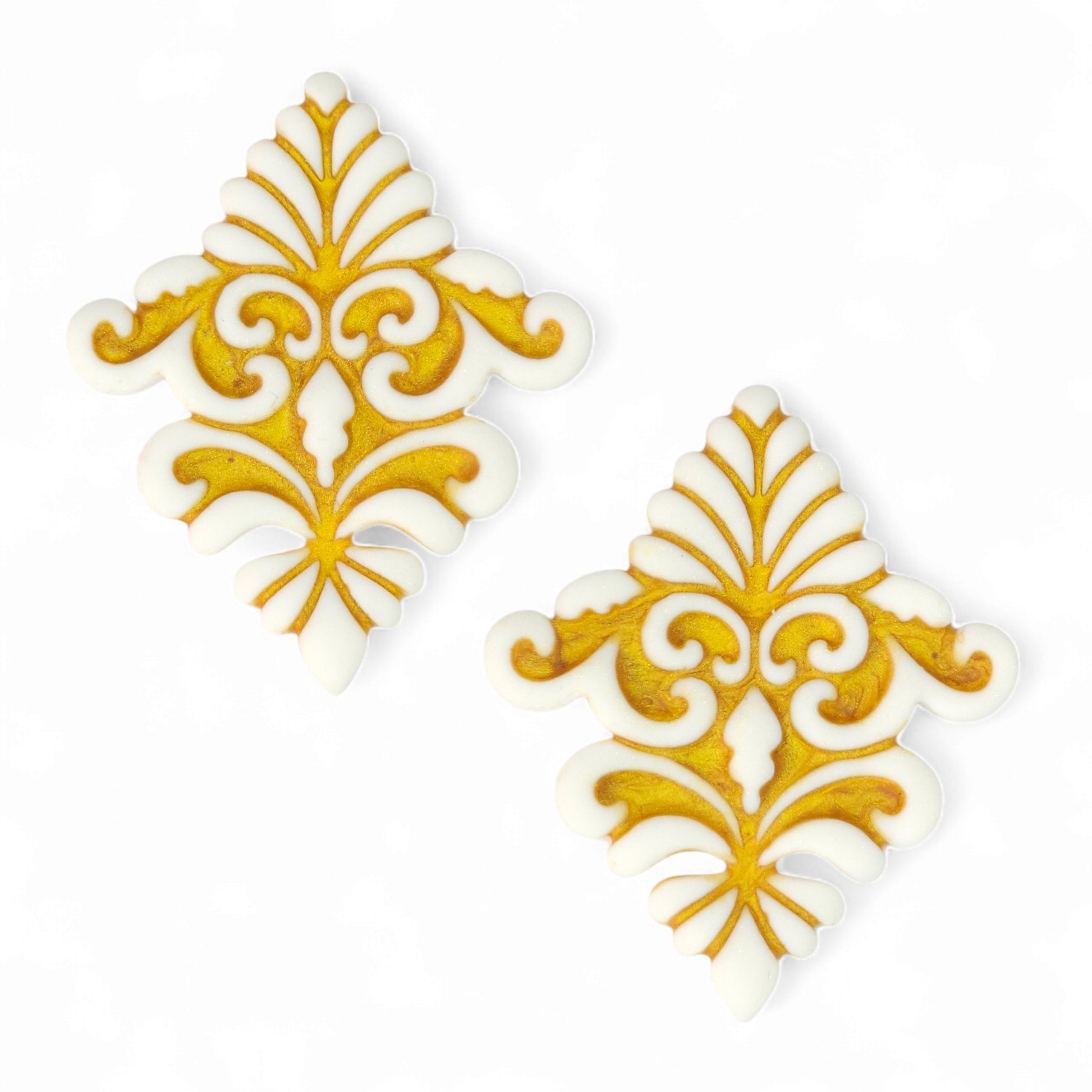 Κομψά καρφωτά σκουλαρίκια σε λευκό με χρυσό από πολυμερικό πηλό.