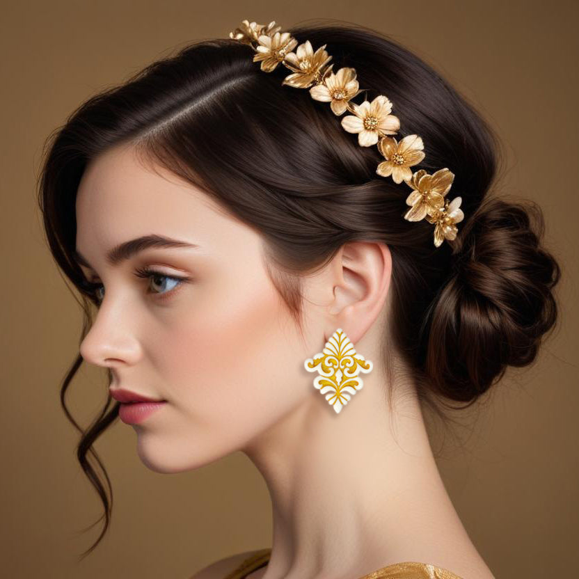 Κομψά καρφωτά σκουλαρίκια σε λευκό με χρυσό από πολυμερικό πηλό