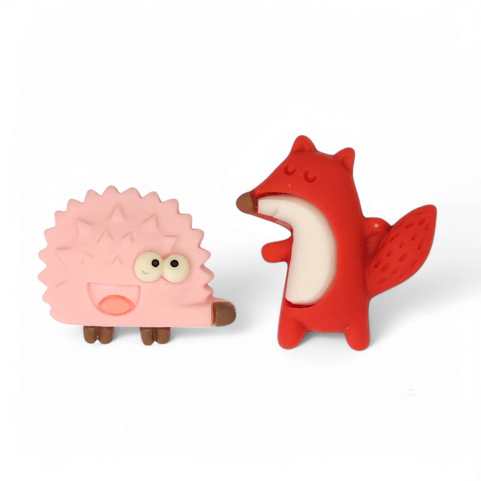 Μεγάλα ανόμοια καρφωτά σκουλαρίκια ροζ σκαντζόχοιρος και κόκκινη αλεπού