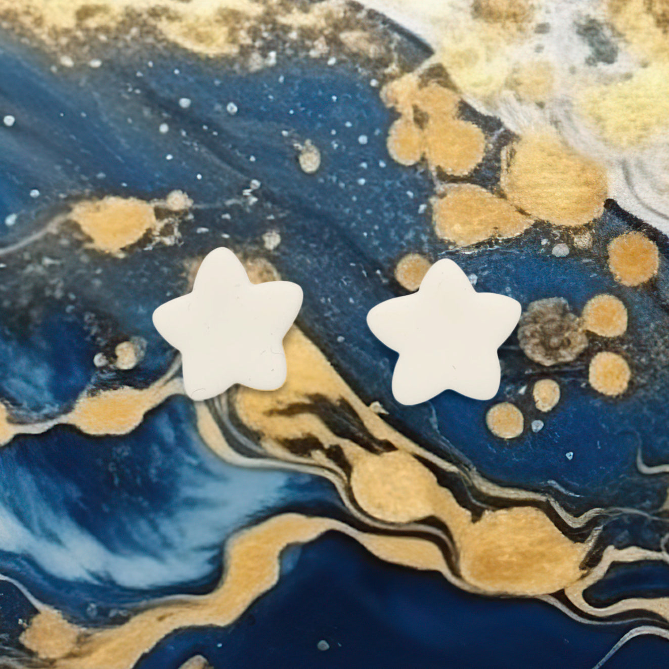 Σκουλαρίκια καρφωτά λευκά αστεράκια από πολυμερικό πηλό.