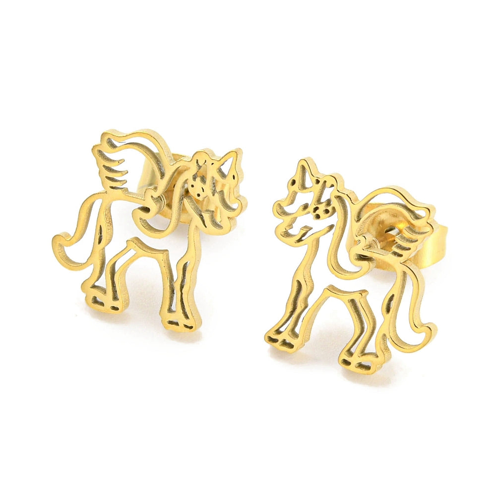 Σκουλαρίκια καρφωτά μονόκεροι από επιχρυσωμένο ανοξείδωτο ατσάλι.