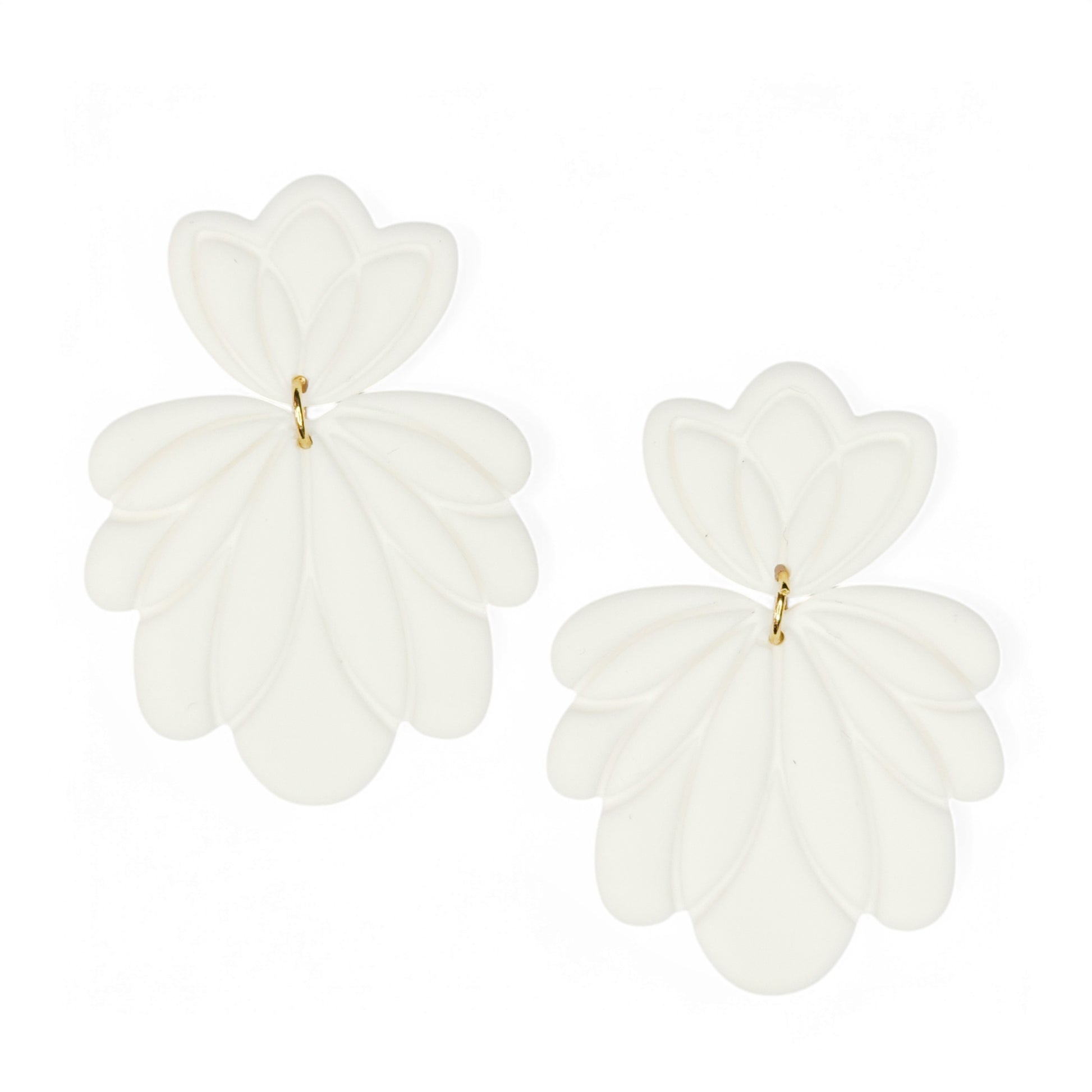 Σκουλαρίκια κρεμαστά λευκά λουλούδια από πολυμερικό πηλό.