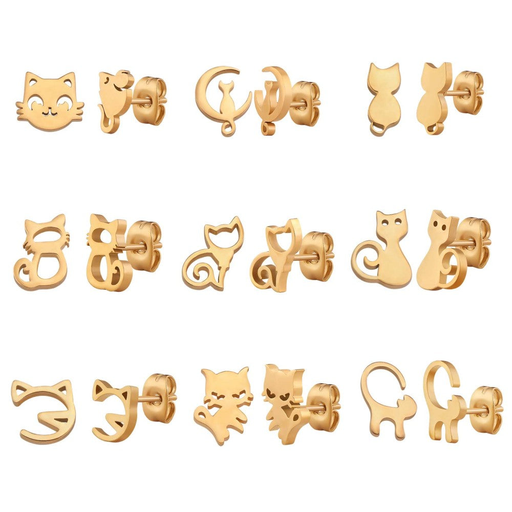 9 διαφορετικά ζευγάρια σκουλαρίκια μαζί γατάκια από επιχρυσωμένο ανοξείδωτο ατσάλι.