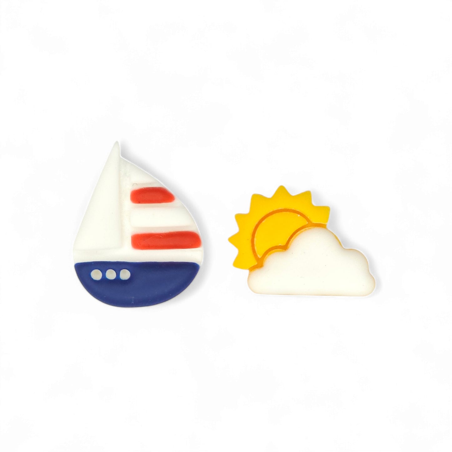 Ανόμοια καρφωτά σκουλαρίκια μαρίν καραβάκι και συννεφάκι με ήλιο από πολυμερικό πηλό