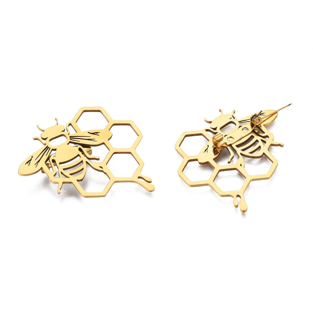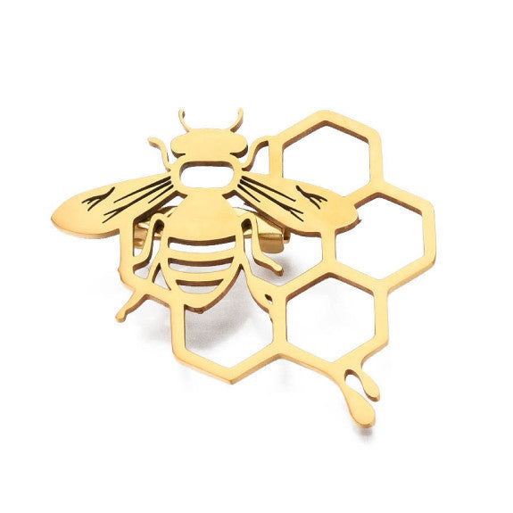Επιχρυσωμένη ατσάλινη μεγάλη καρφίτσα κυψέλη με μέλισσα