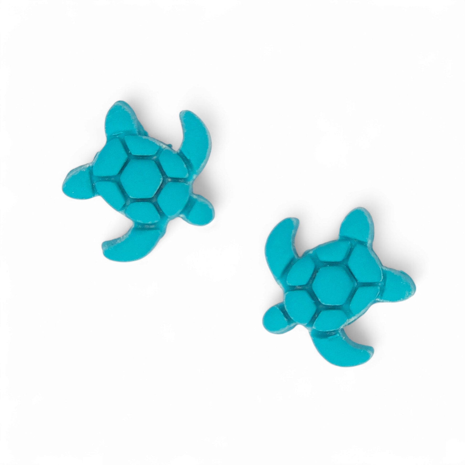 Καρφωτά καλοκαιρινά παιδικά σκουλαρίκια τυρκουάζ χελωνάκια από πολυμερικό πηλό.