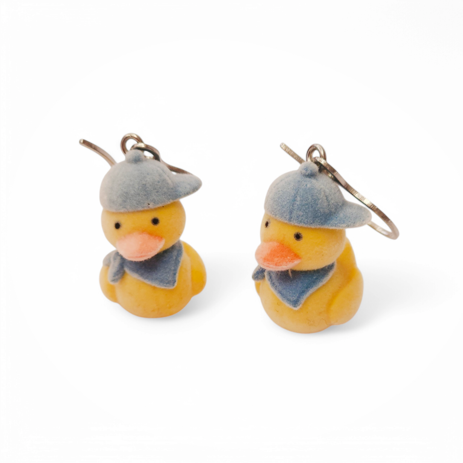 Κρεμαστά σκουλαρίκια κίτρινα χνουδωτά παπάκια με γαλάζια καπελάκια