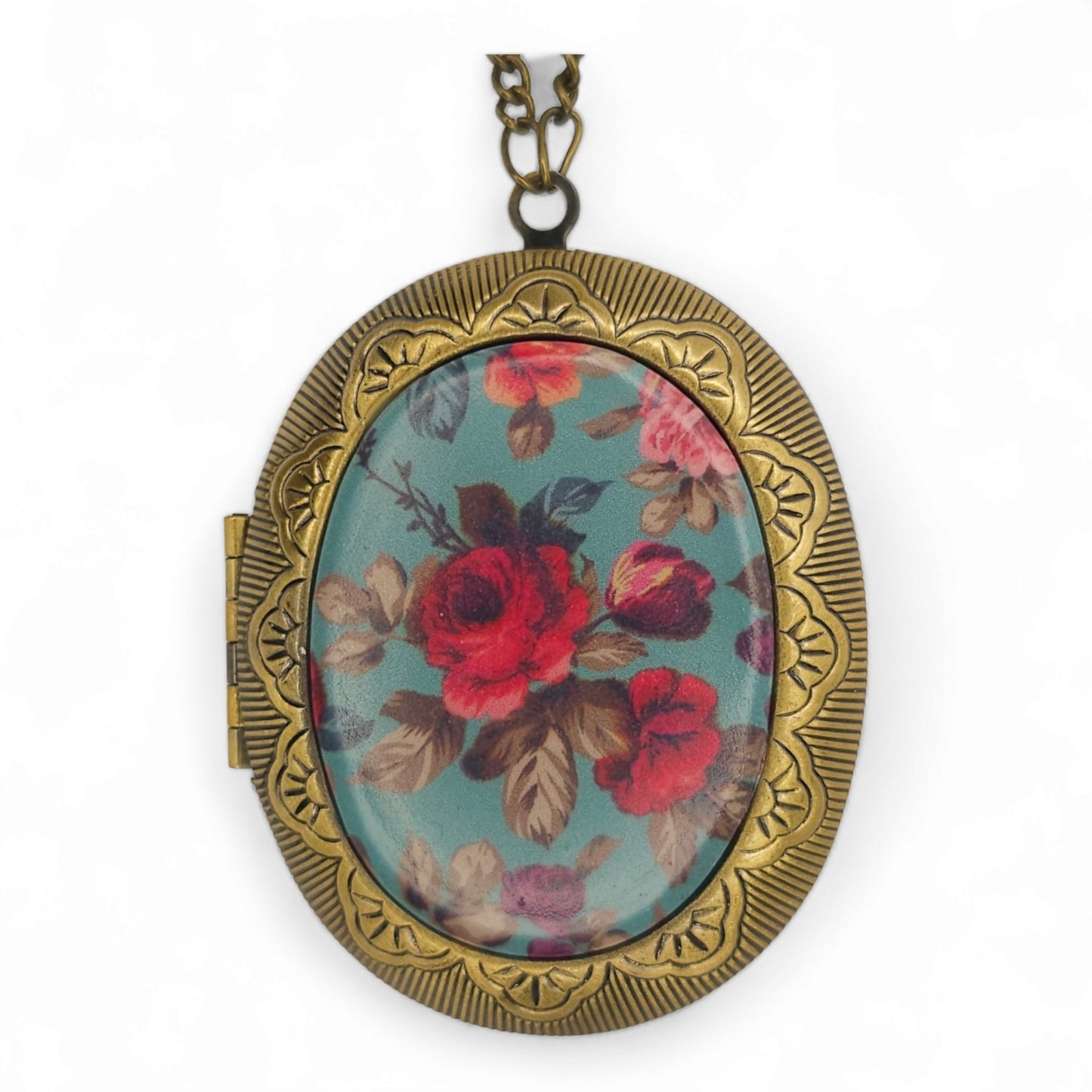 Μακρύ κολιέ μεγάλο μπρονζέ locket για φωτογραφίες της συλλογής Vintage roses