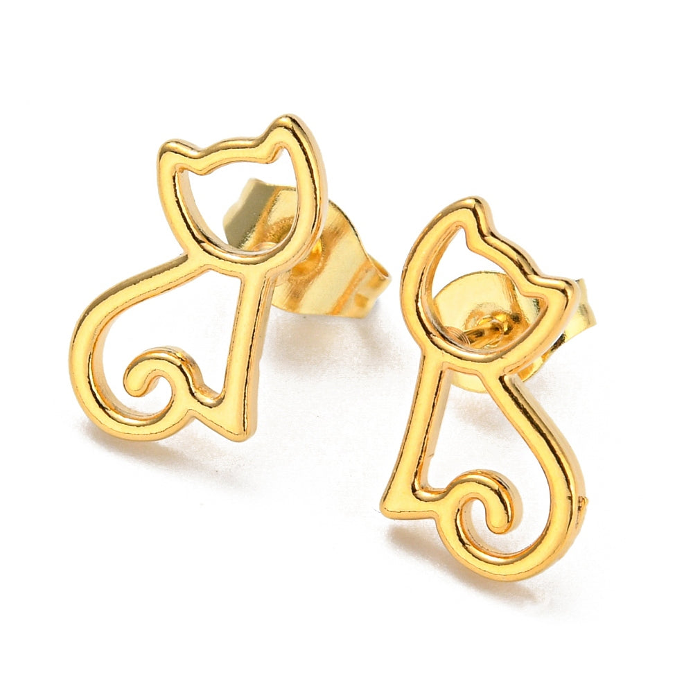 Σκουλαρίκια καρφωτά από επιχρυσωμένο ανοξείδωτο ατσάλι γάτες.
