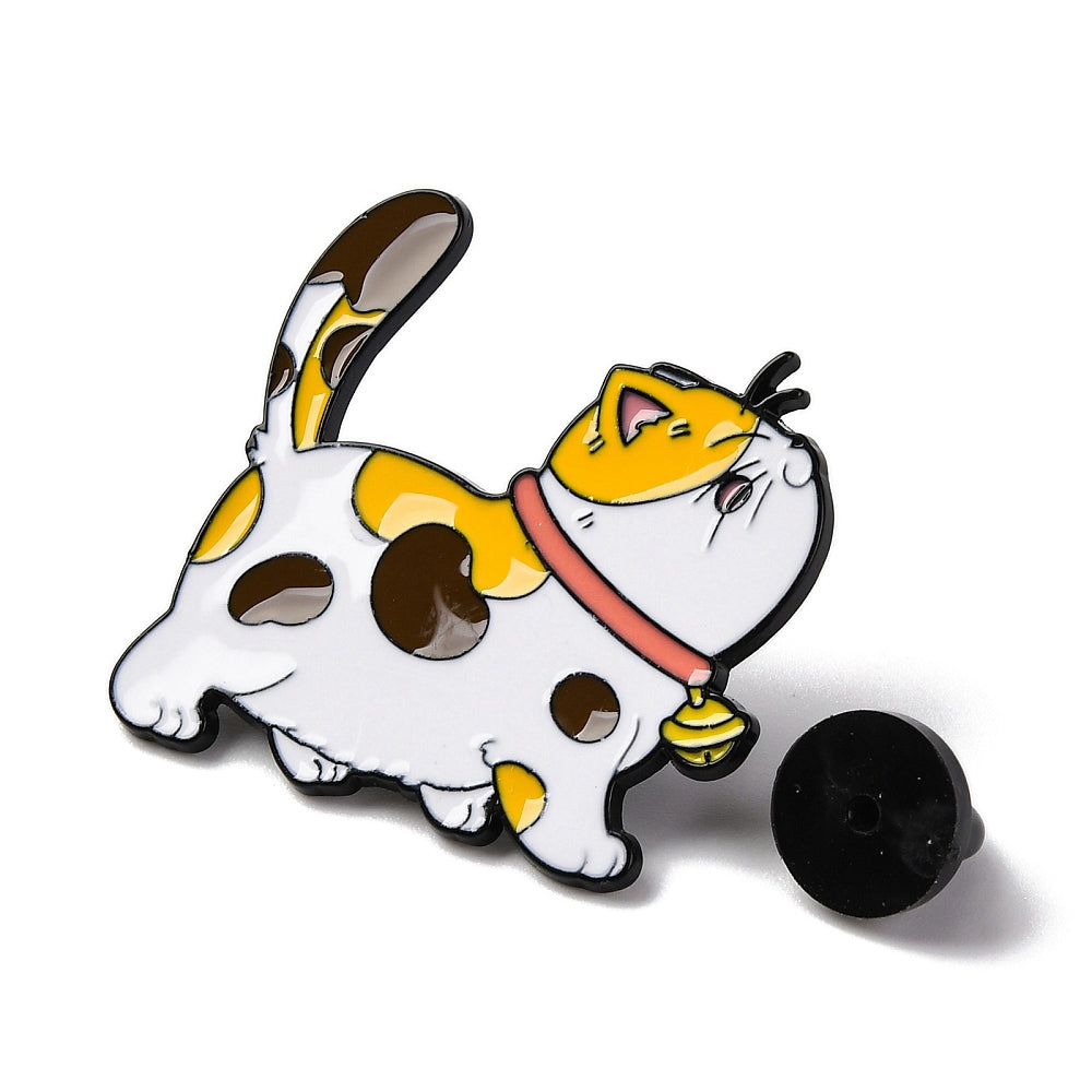 Χαριτωμένη μεταλλική καρφίτσα με γάτα τρικολόρ.